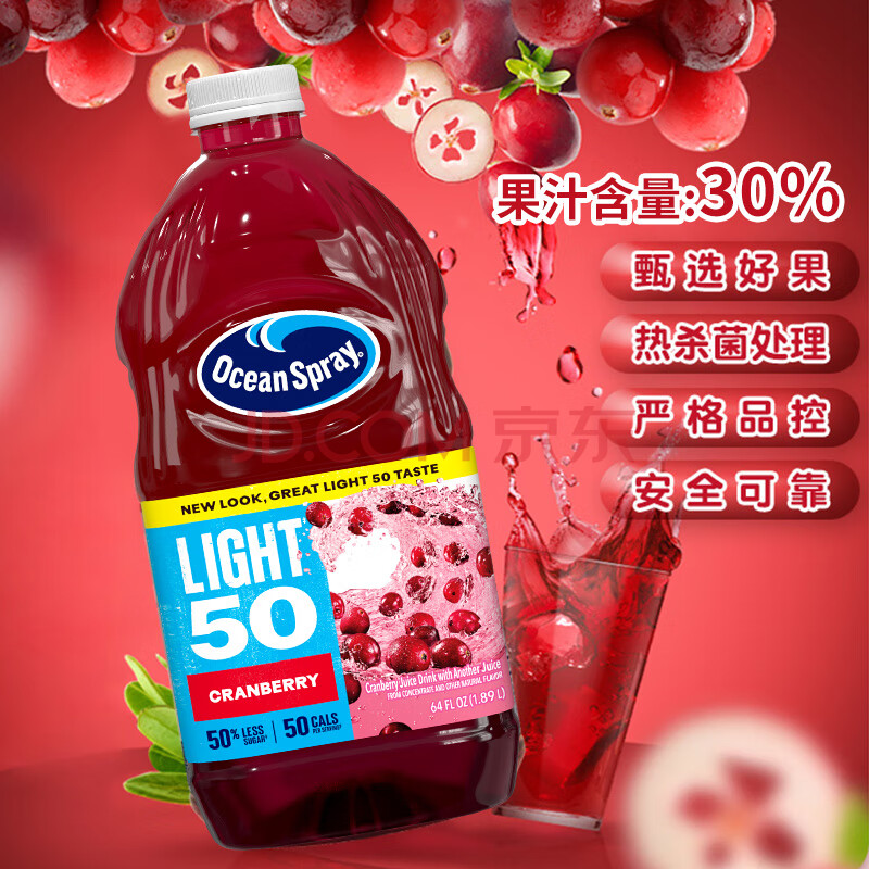 优鲜沛(Ocean Spray)轻盈蔓越莓汁1.89L 美国进口 果汁饮料饮品可调鸡尾酒