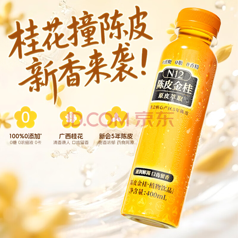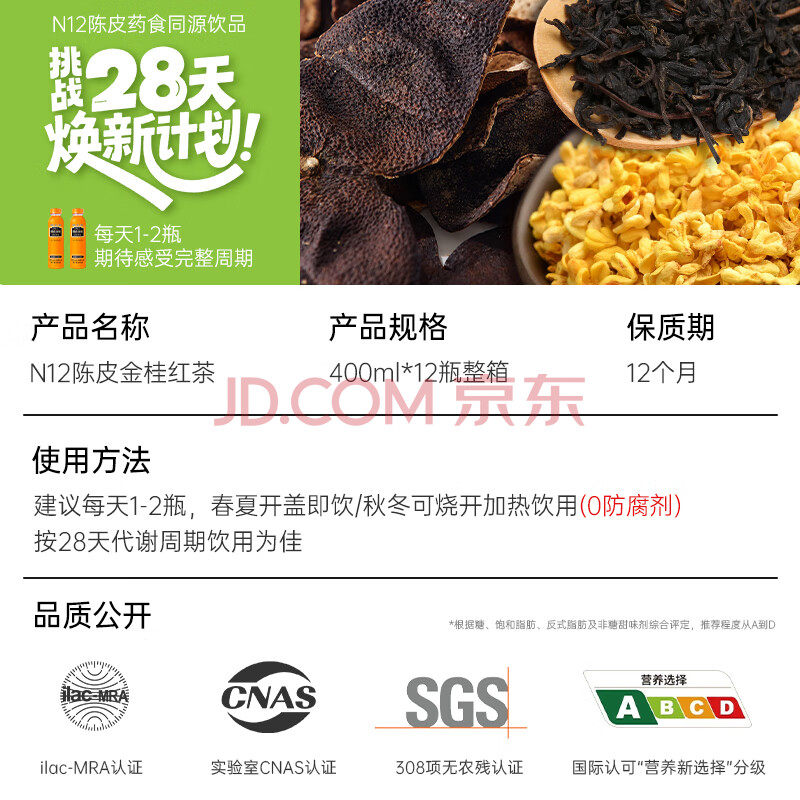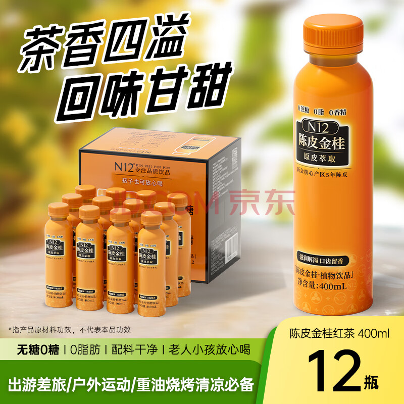商品名称:N12陈皮金桂红茶0糖0脂0卡0防腐剂无糖饮料400ml*12瓶整箱装中秋送礼