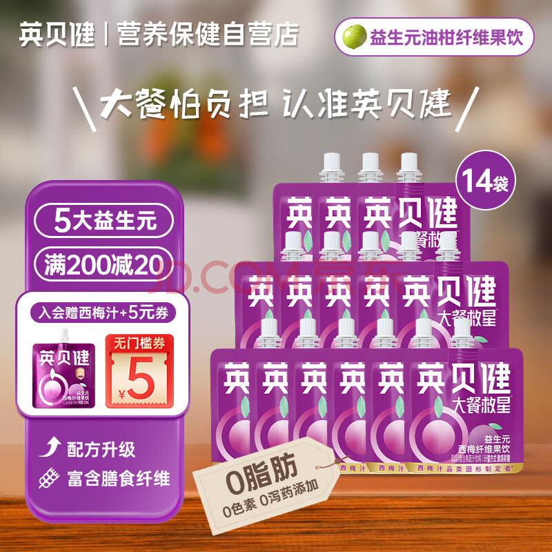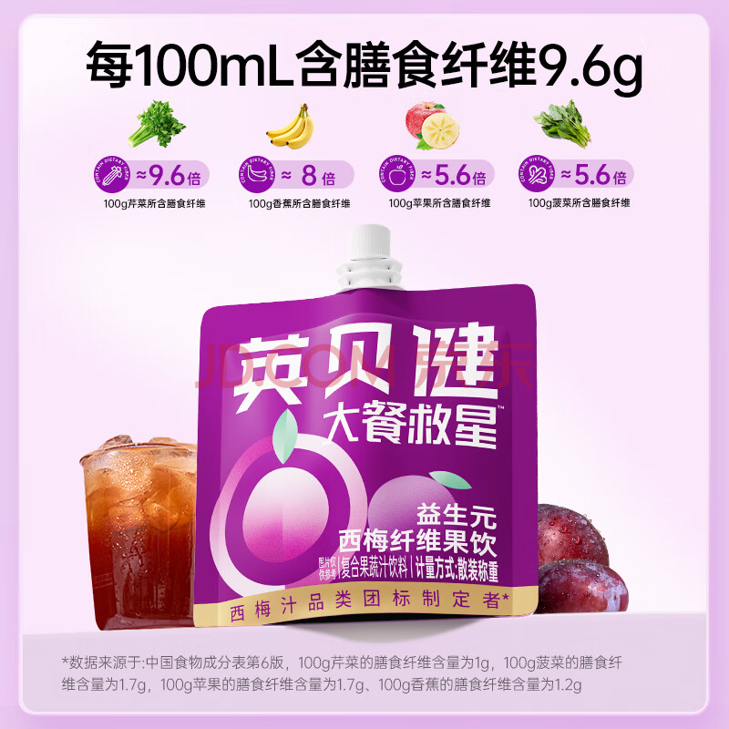 商品名称:英贝健西梅汁980ml共14袋 大餐救星益生元纤维饮浓缩果蔬汁饮料袋装