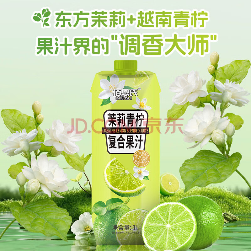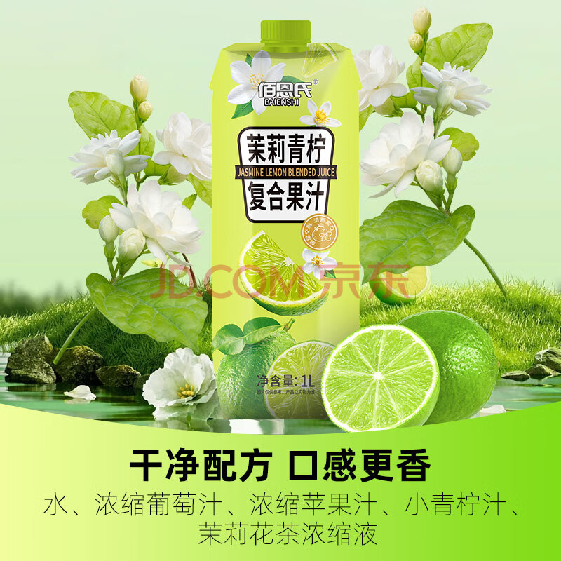 商品名称:佰恩氏(BAIENSHI)茉莉青柠汁柠檬饮料复合果汁饮品【0添加剂】0脂 1L*1瓶