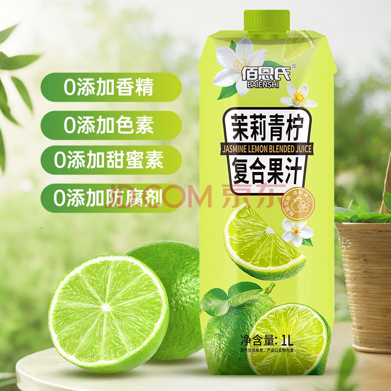 佰恩氏(BAIENSHI)茉莉青柠汁柠檬饮料复合果汁饮品【0添加剂】0脂 1L*1瓶