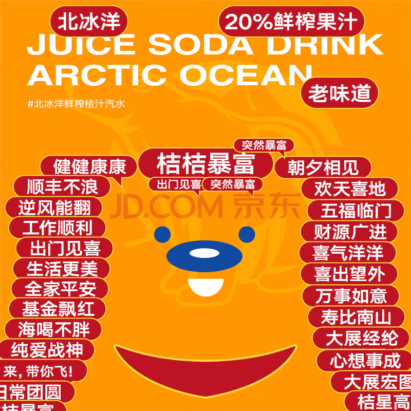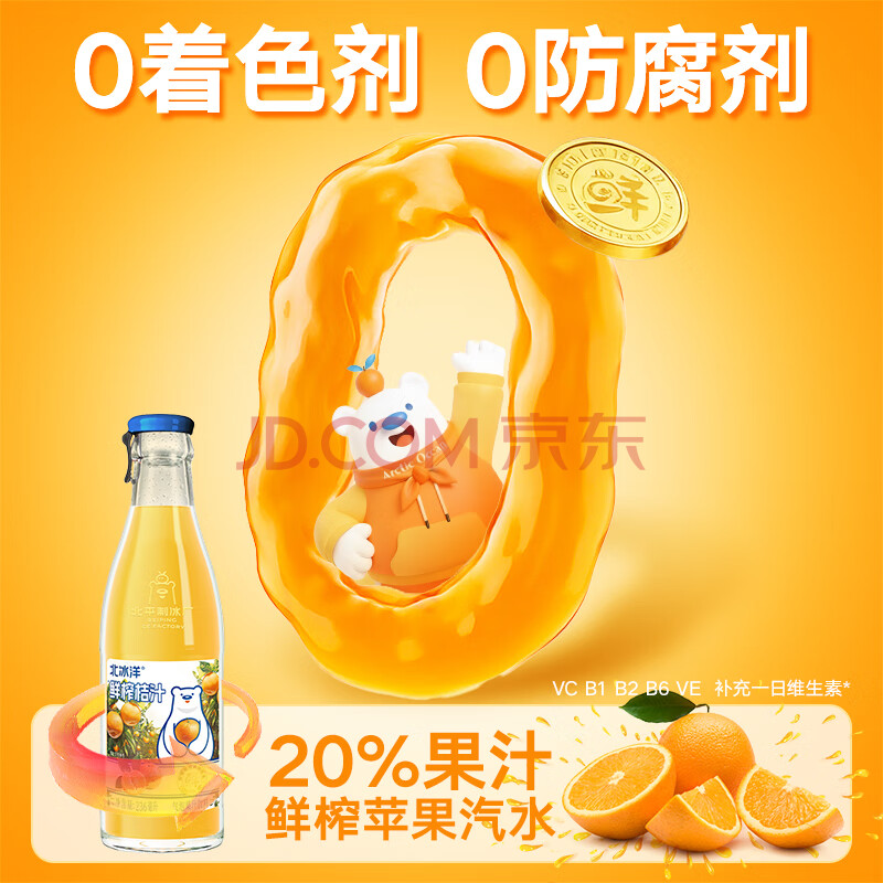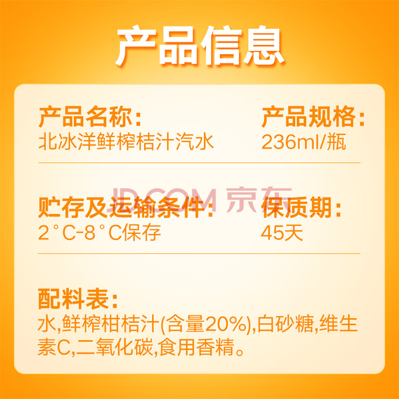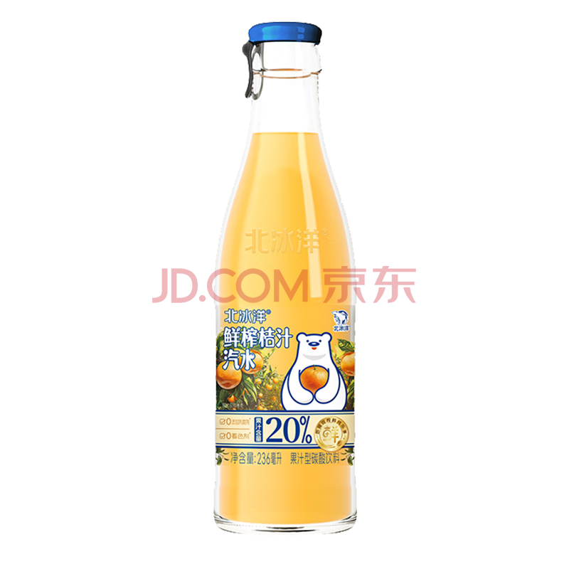 商品名称:北冰洋鲜榨桔汁汽水果汁气泡碳酸饮料236mI*12瓶整箱装20%果汁含量年货