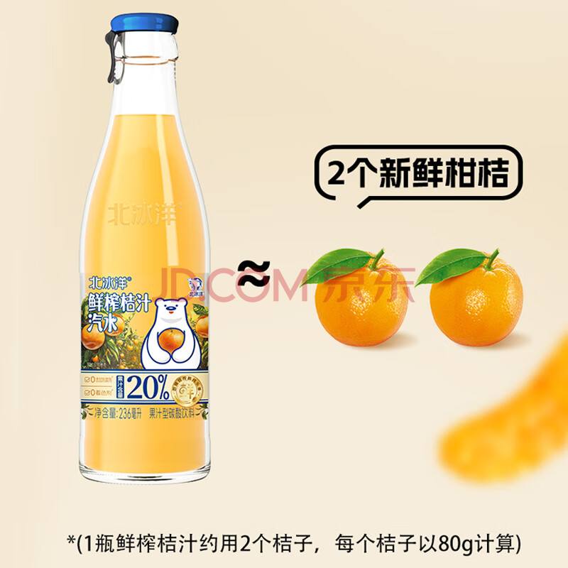 > 北冰洋鲜榨桔汁汽水果汁气泡碳酸饮料236mI*12瓶整箱装20%果汁含量年货