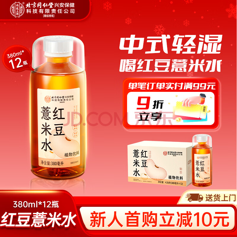 商品名称:同仁堂北京同仁堂红豆薏米水薏仁茶水无糖0脂0卡0添加植物饮料380ml*12