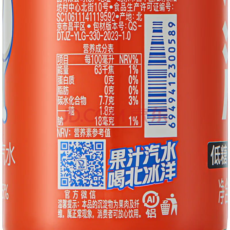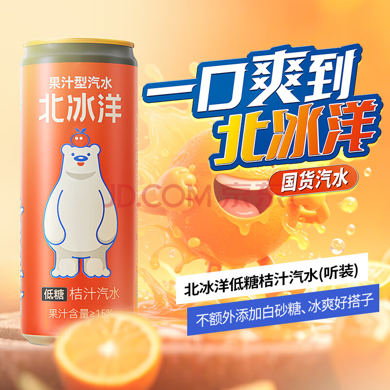 商品名称:北冰洋 低糖桔汁汽水330ml*6罐 果汁碳酸饮料