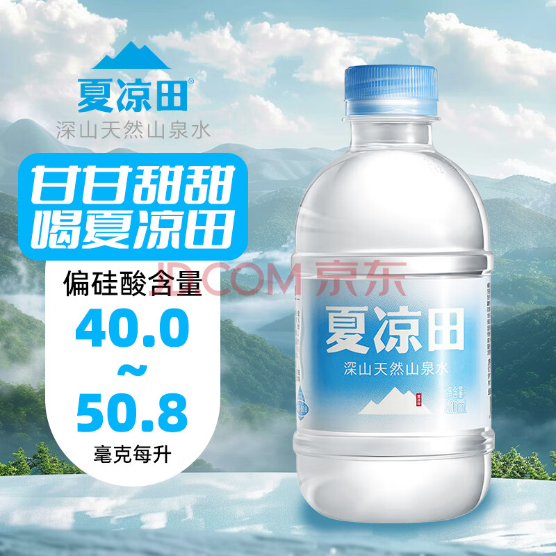 > 夏凉田高偏硅酸弱碱 夏凉田天然山泉水 400ml*20瓶整箱 饮用水 京东自营