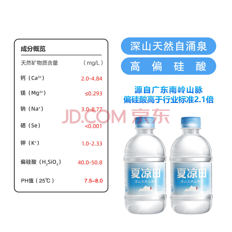夏凉田高偏硅酸弱碱 夏凉田天然山泉水 400ml*20瓶整箱 饮用水 京东自营