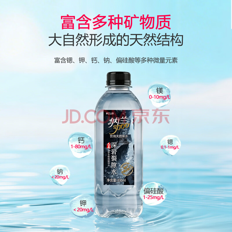 商品名称:纳兰上游巴马源头天然深岩自涌泉330ml*24瓶弱碱性低钠小分子高端饮用水