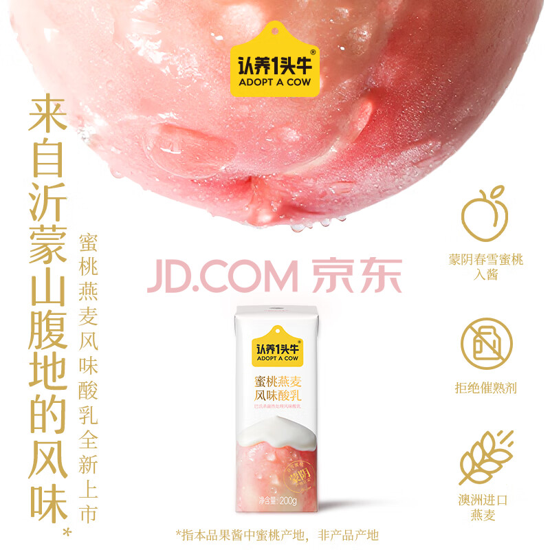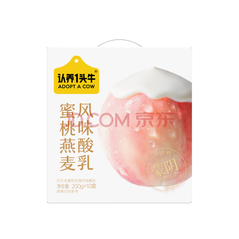 商品名称:认养一头牛常温蜜桃果粒燕麦风味酸奶200g*10盒/甄选春雪蜜桃早餐整箱礼盒装