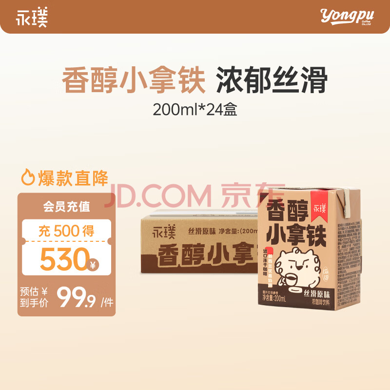 > 永璞即饮咖啡香醇小拿铁 丝滑原味浓咖啡饮料 200ml*24盒