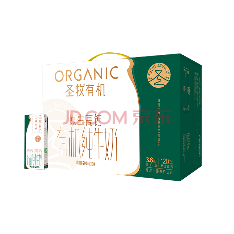 商品名称:圣牧有机纯牛奶3.6g蛋白 200ml*30盒牛奶家庭装早餐奶 囤货送礼