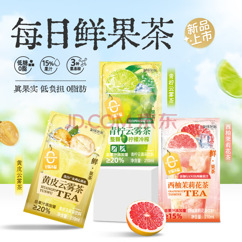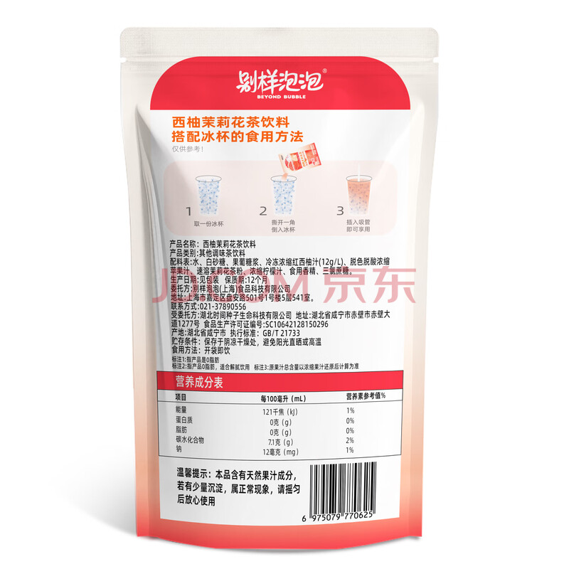 商品名称:别样泡泡 每日鲜果茶 西柚茉莉花茶210ml*8袋 0脂肪饮料 便携开袋即饮