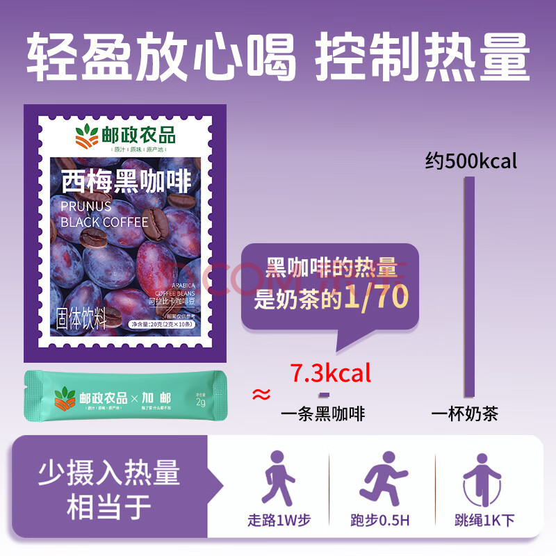商品名称:加邮西梅黑咖啡0蔗糖0脂0卡速溶送牛奶杯8盒160g