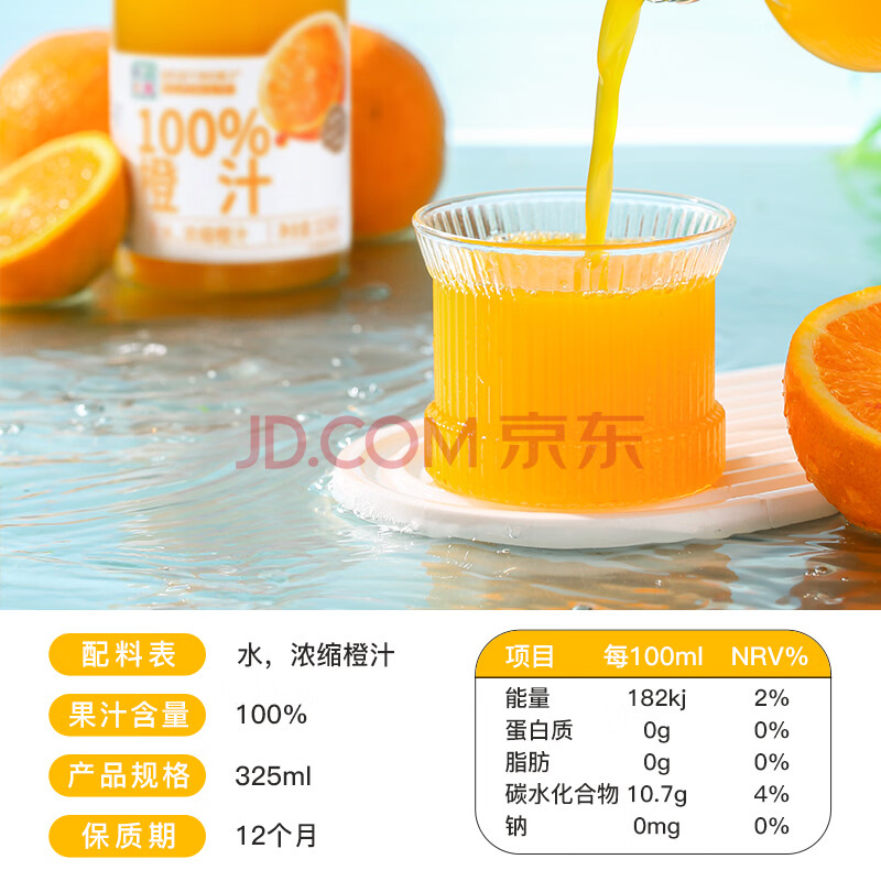 商品名称:汇多滋甄蔬甄果100%纯果汁饮料送礼 玻璃瓶橙汁325ml*6瓶