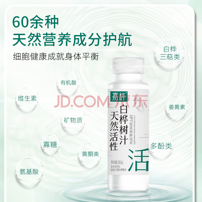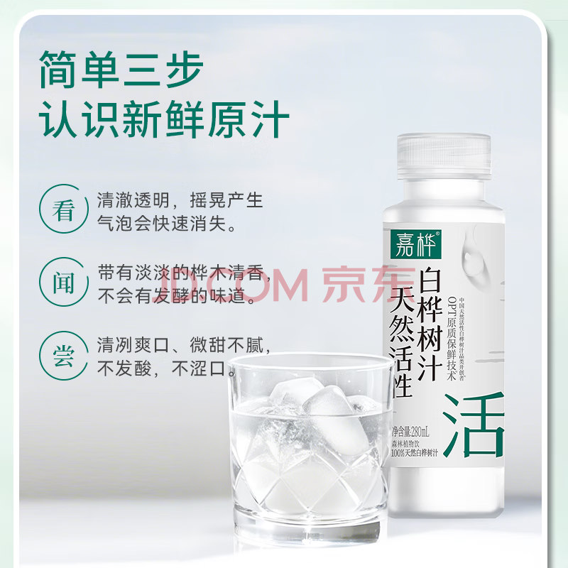 商品名称:嘉桦天然活性白桦树汁原汁OPT原质保鲜森林植物饮品饮料 280ml*6瓶