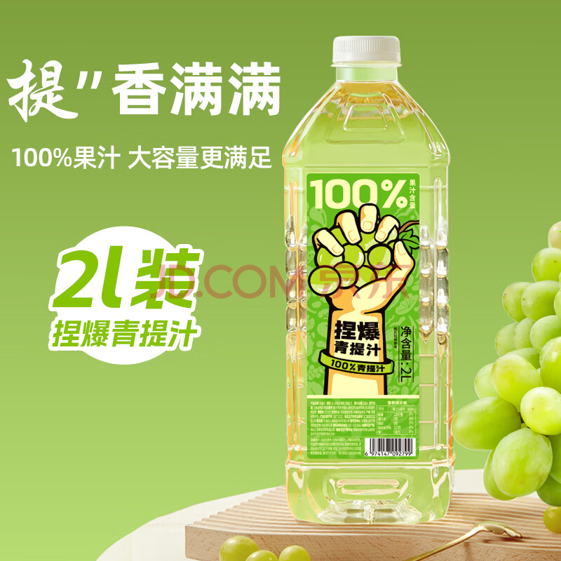 商品名称:哪吒捏爆100%青提葡萄果汁2L*2瓶0脂肪0添加蔗糖过年聚餐火锅vc饮料品