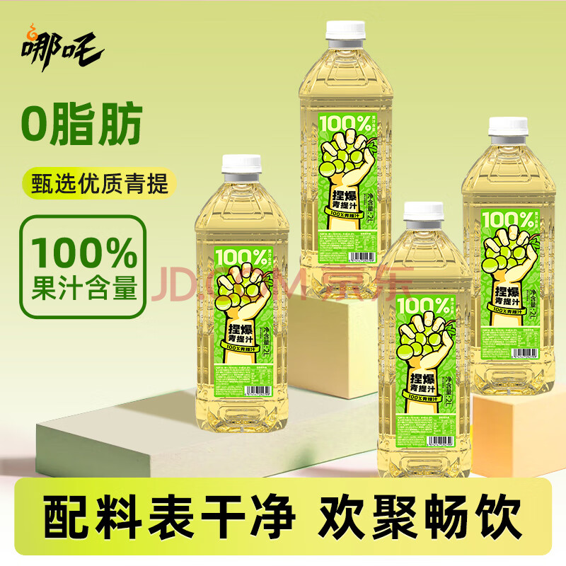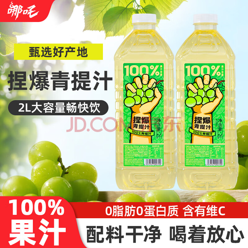 哪吒捏爆100%青提葡萄果汁2L*2瓶0脂肪0添加蔗糖过年聚餐火锅vc饮料品