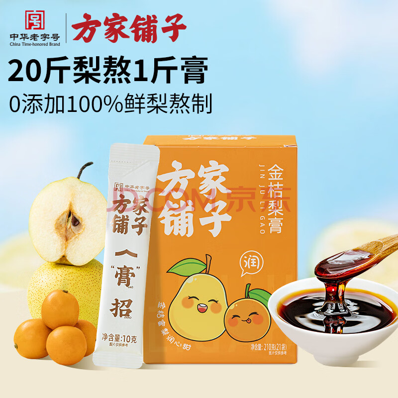 商品名称:方家铺子金桔梨膏210g 秋梨膏 儿童冲饮滋养冲泡水独立条装