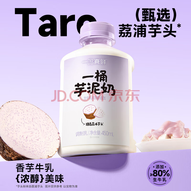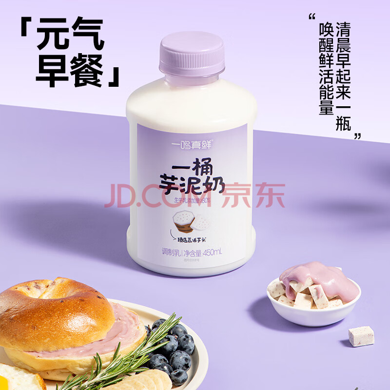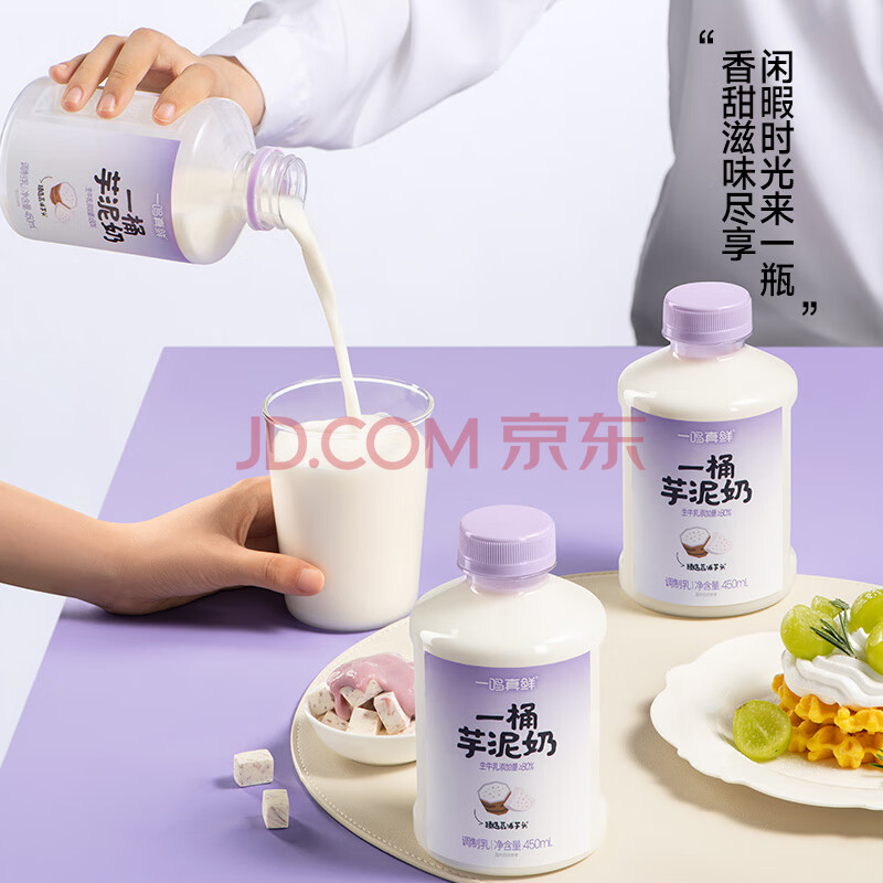 商品名称:一鸣新鲜冰牛乳一桶芋泥奶450ml*6瓶儿童学生甜早餐牛奶冷链源头直发