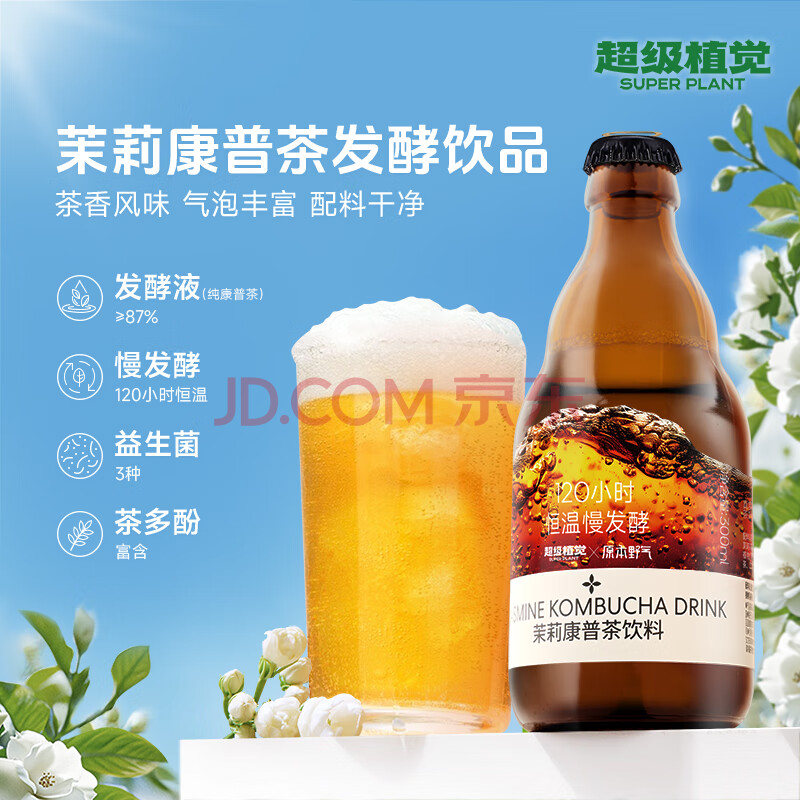 商品名称:超植季超级植觉茉莉康普茶饮料300ml*6瓶益生菌恒温发酵气泡茶胃宝年货