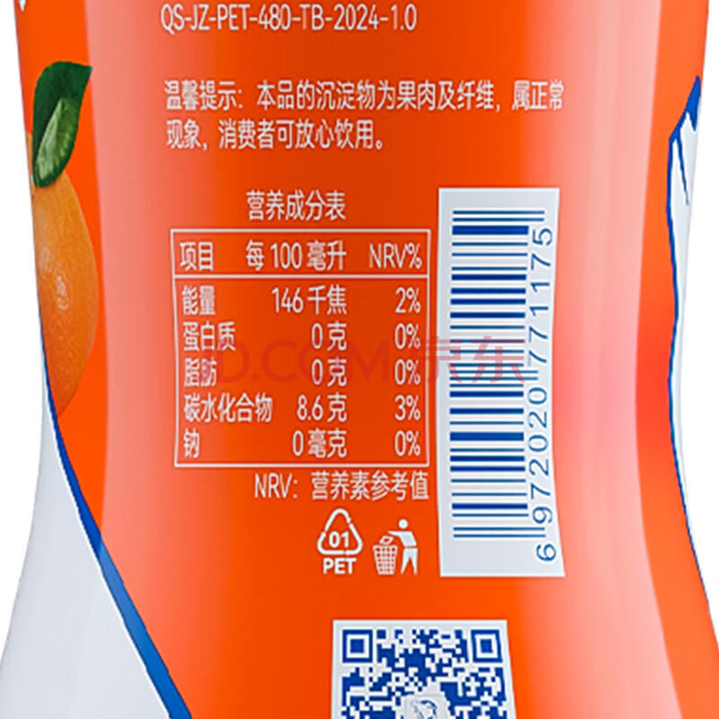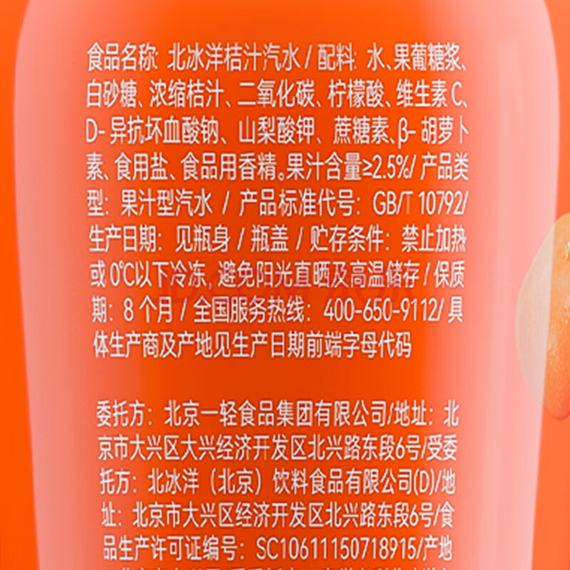 商品名称:北冰洋 桔汁汽水 480ml*15瓶 果汁碳酸饮料 整箱装