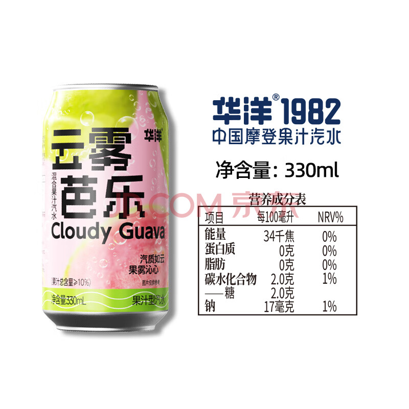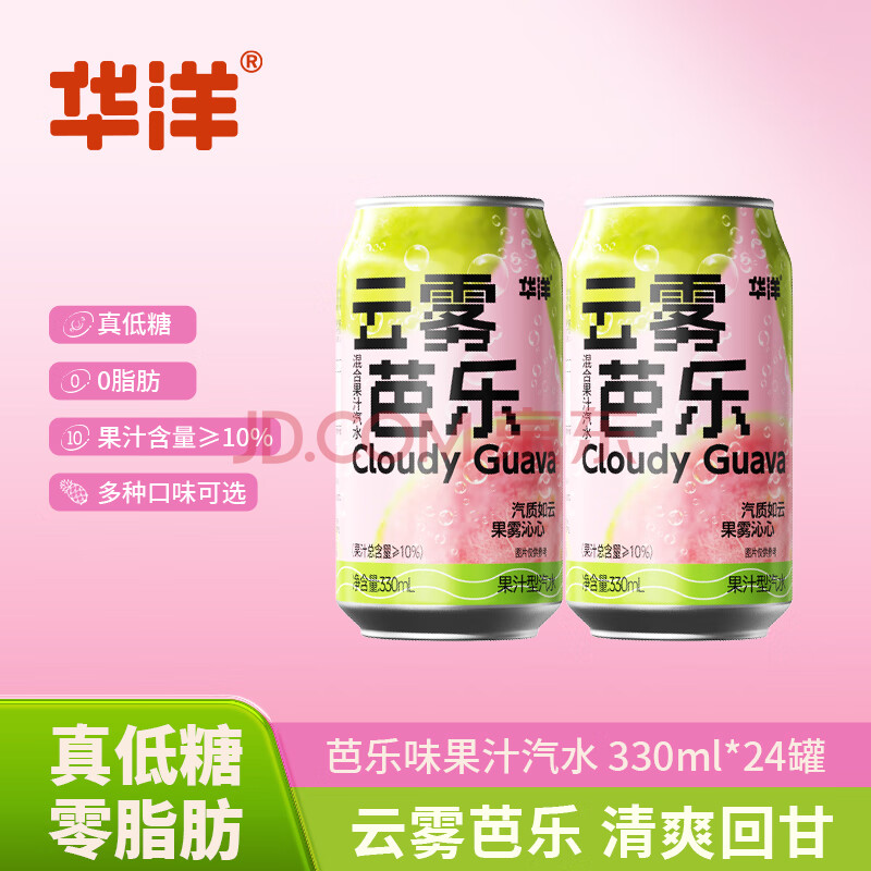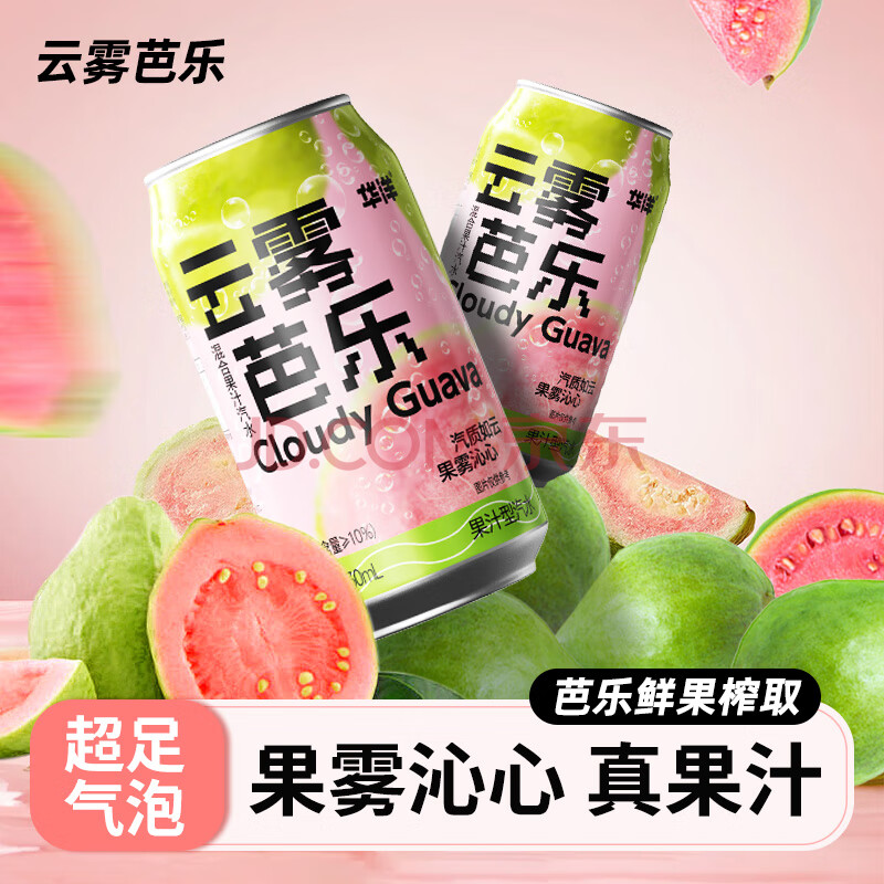 商品名称:华洋果汁型汽水云雾芭乐330ml*6罐低糖0脂肪网红碳酸饮料