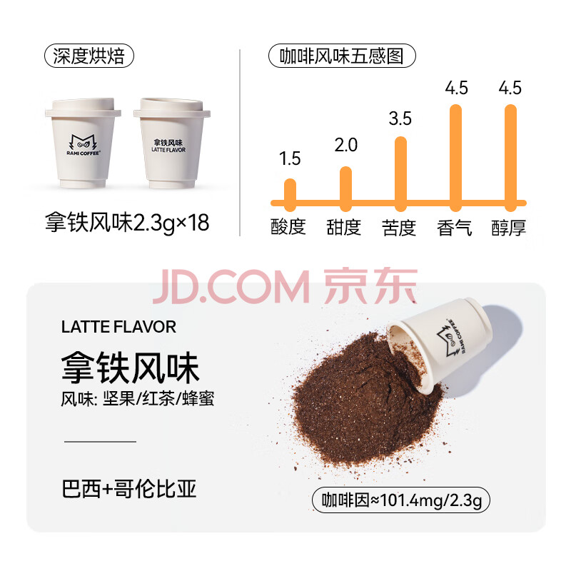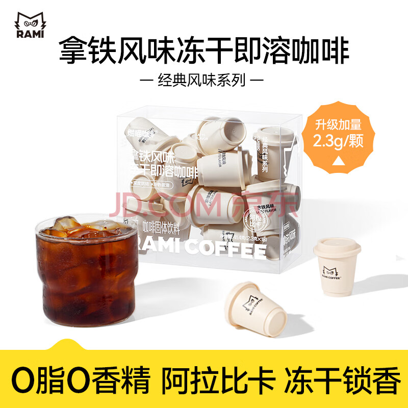 商品名称:燃喵经典系列冷萃冻干咖啡速溶黑咖啡0脂美式咖啡 拿铁风味2.3g*18颗