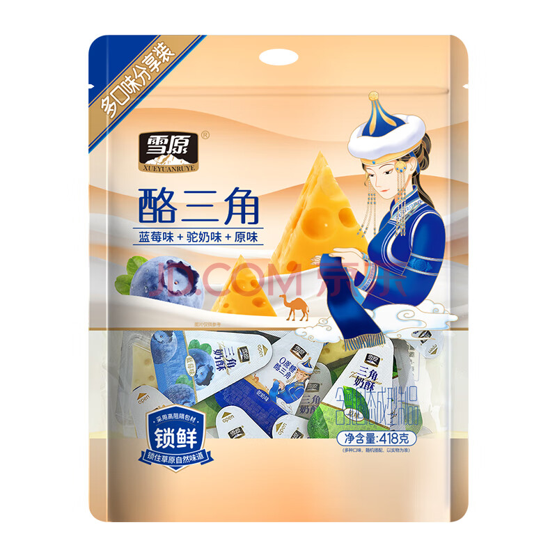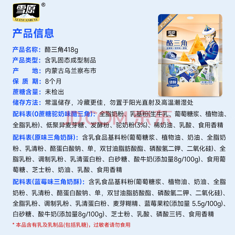 商品名称:雪原酪三角418g 驼奶味0蔗糖内蒙古特产零食三角奶酥混合口味418g