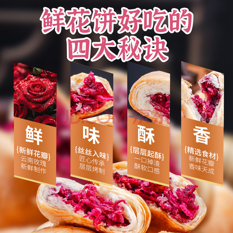 商品名称:妙上品鲜花饼500g【整箱20枚】云南特产玫瑰花馅小吃早餐传统糕点点心