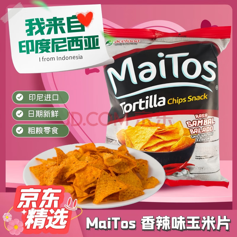商品名称:maitos香辣味玉米片 70g/袋 印尼进口玉米片健康粗粮薯片休闲零食