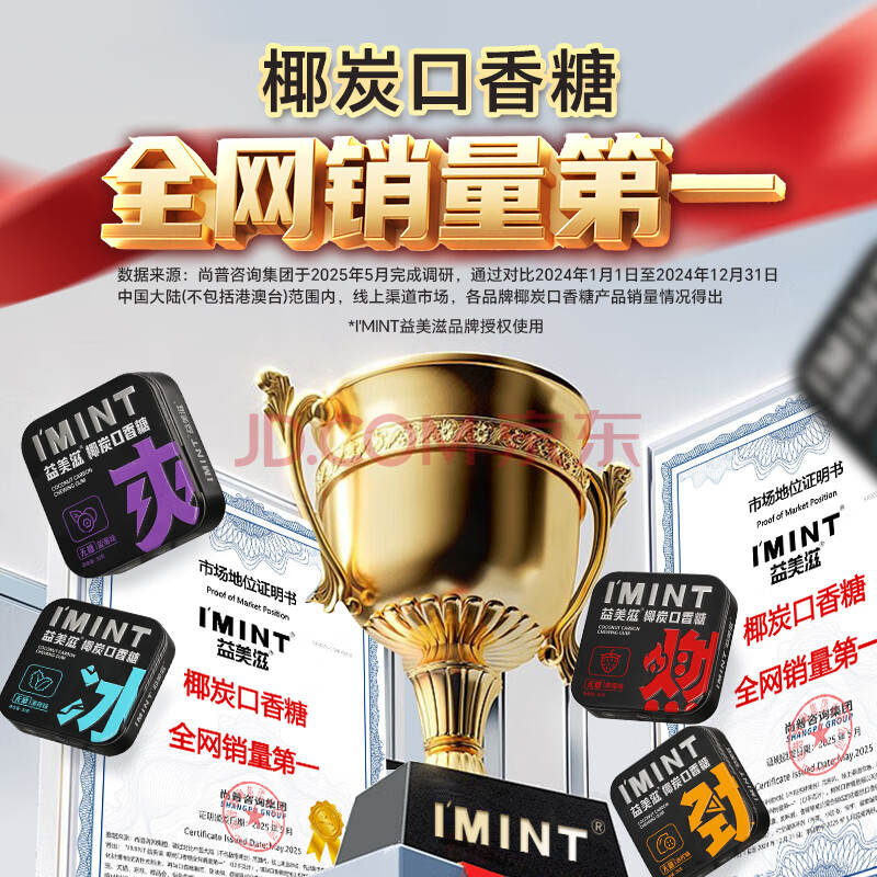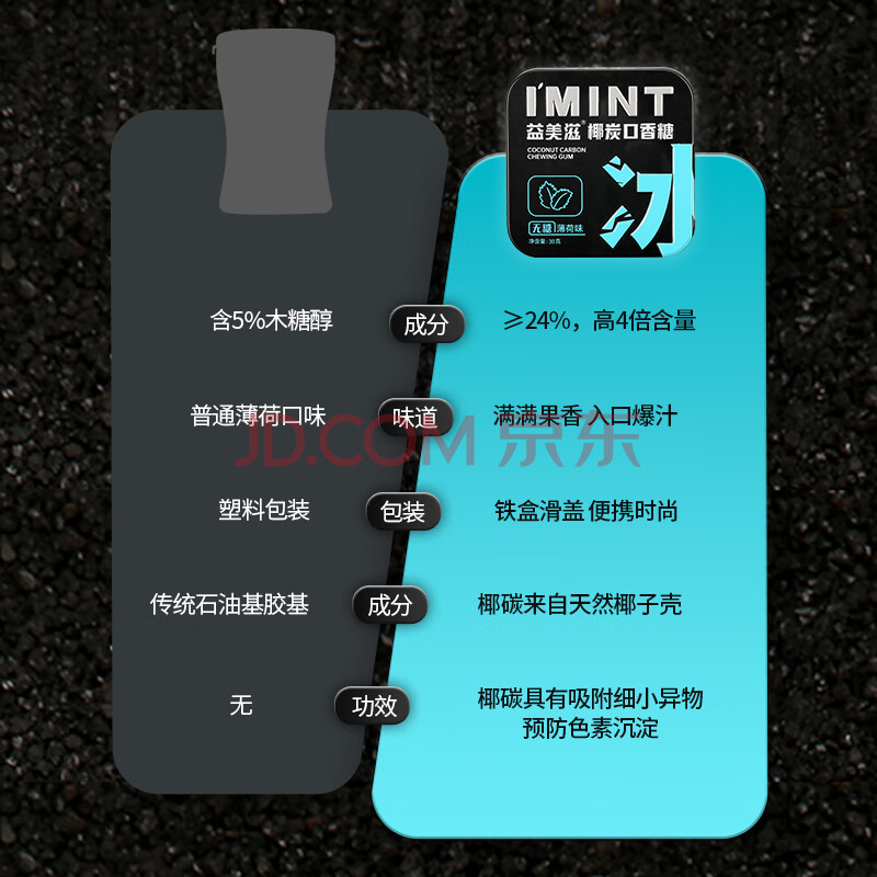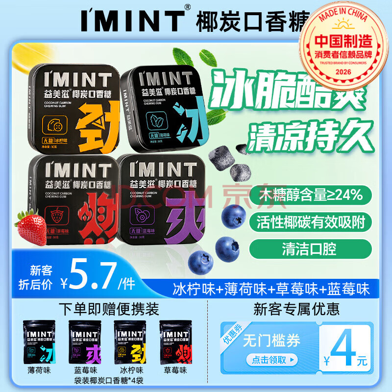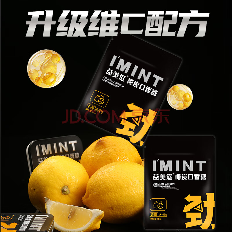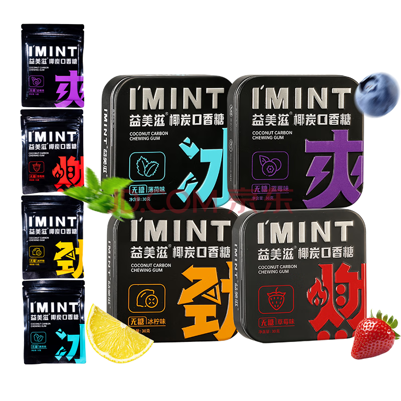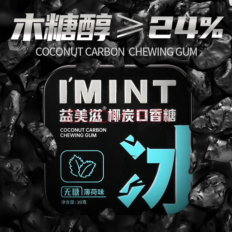商品名称:I'MINT益美滋 无糖椰碳口香糖 30g*4 清新口气 薄荷糖果零食 益美滋混合口味