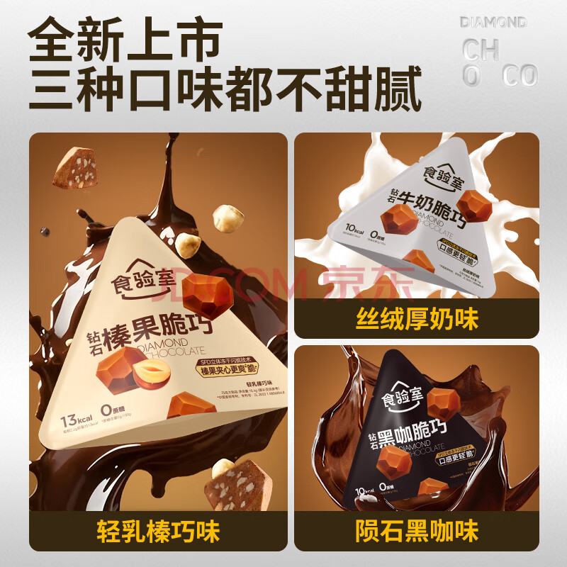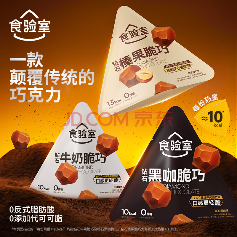 商品名称:食验室冻干巧克力脆巧轻乳榛子15.4g0代可可脂鲜脆休闲零食