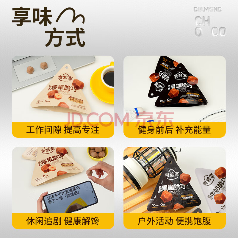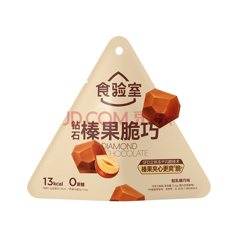 > 食验室冻干巧克力脆巧轻乳榛子15.4g0代可可脂鲜脆休闲零食