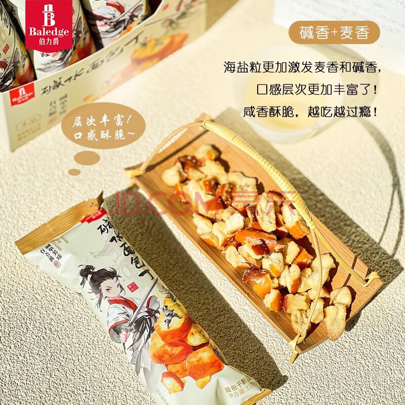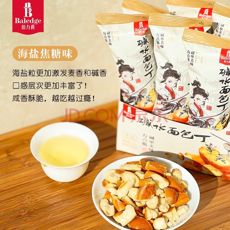 商品名称:伯力爵碱水面包丁面包干油炸网红面包干解馋休闲零食海盐焦糖味33g*4袋