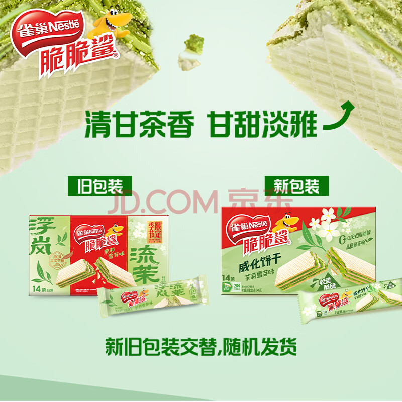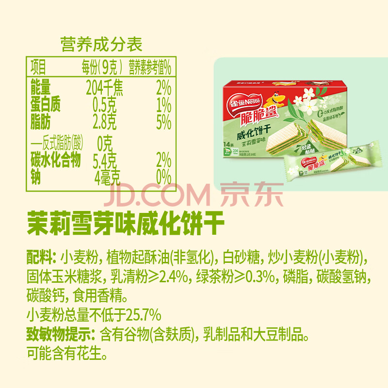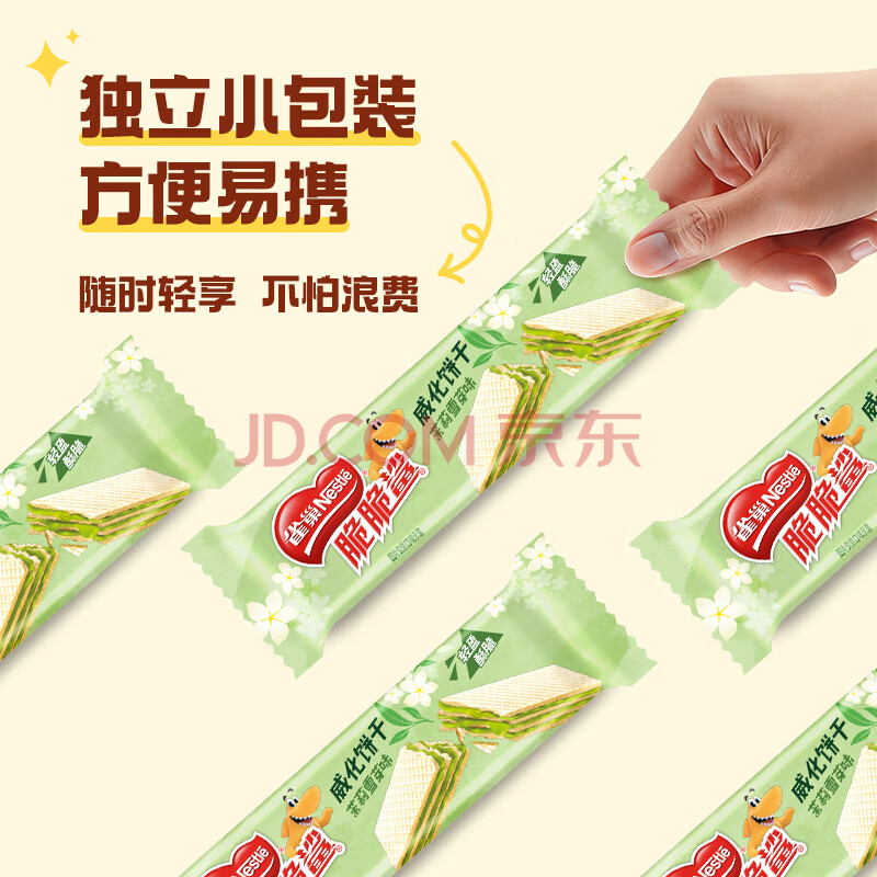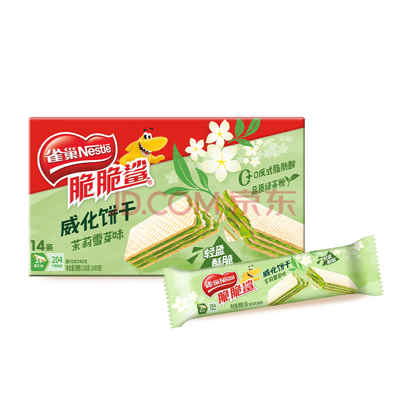 商品名称:雀巢(Nestle)脆脆鲨茉莉雪芽裸威化夹心饼干14条 休闲零食办公室 独立包装