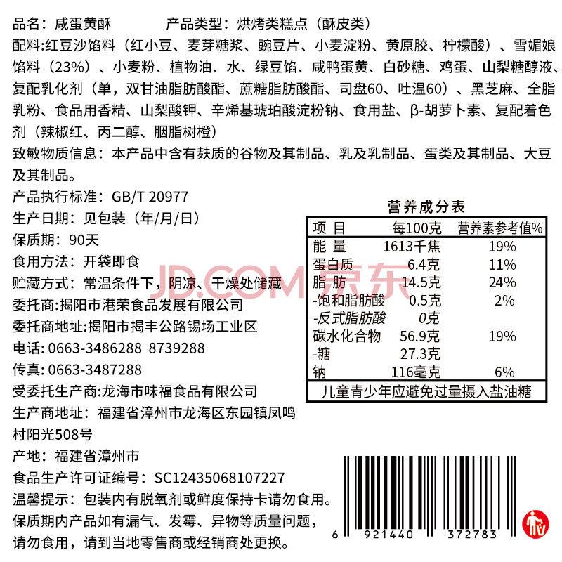 商品名称:港荣咸蛋黄酥礼盒1000g红豆味20枚 雪媚娘零食下午茶中西式糕点心礼盒