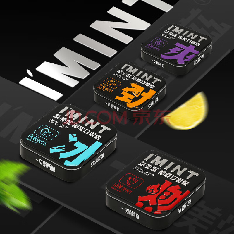 I'MINT益美滋 无糖椰碳口香糖 30g*4 清新口气 薄荷糖果零食 益美滋混合口味