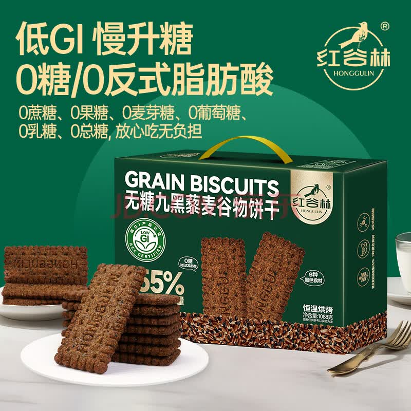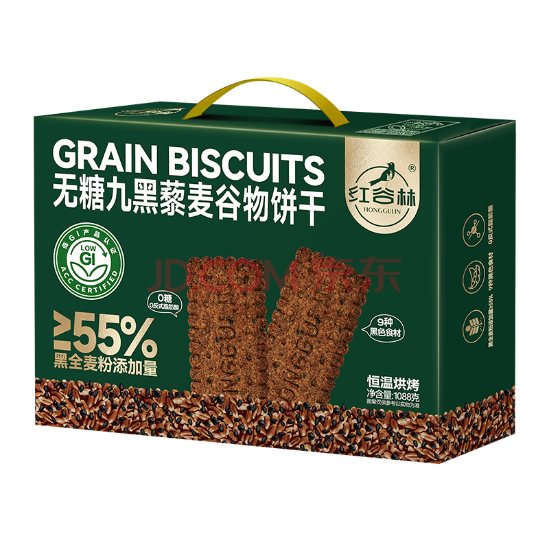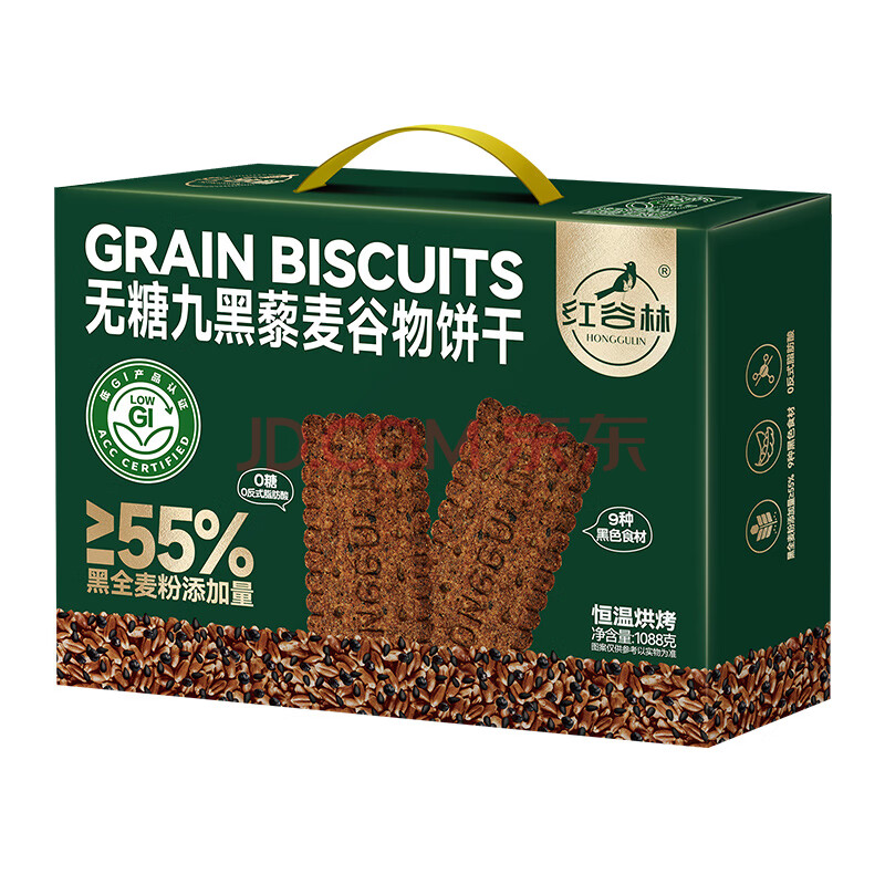 商品名称:红谷林无糖9黑藜麦谷物低gi粗粮早餐饼干礼盒1088g送长辈亲友伴手礼