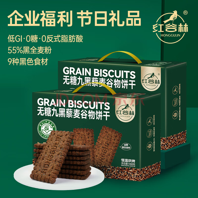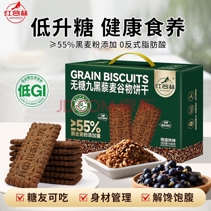 红谷林无糖9黑藜麦谷物低gi粗粮早餐饼干礼盒1088g送长辈亲友伴手礼
