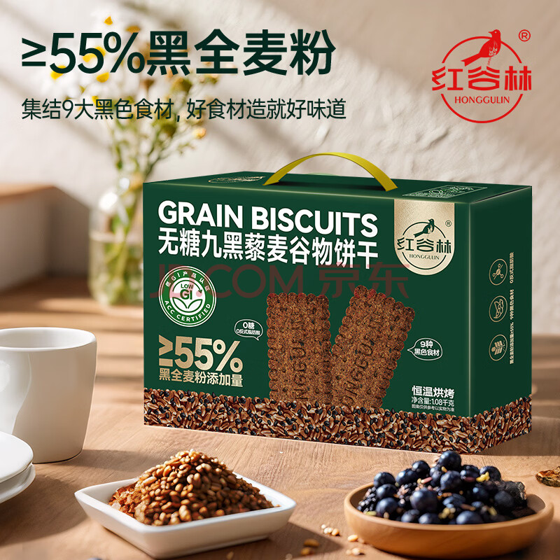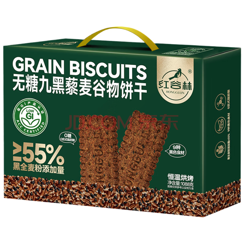 > 红谷林无糖9黑藜麦谷物低gi粗粮早餐饼干礼盒1088g送长辈亲友伴手礼