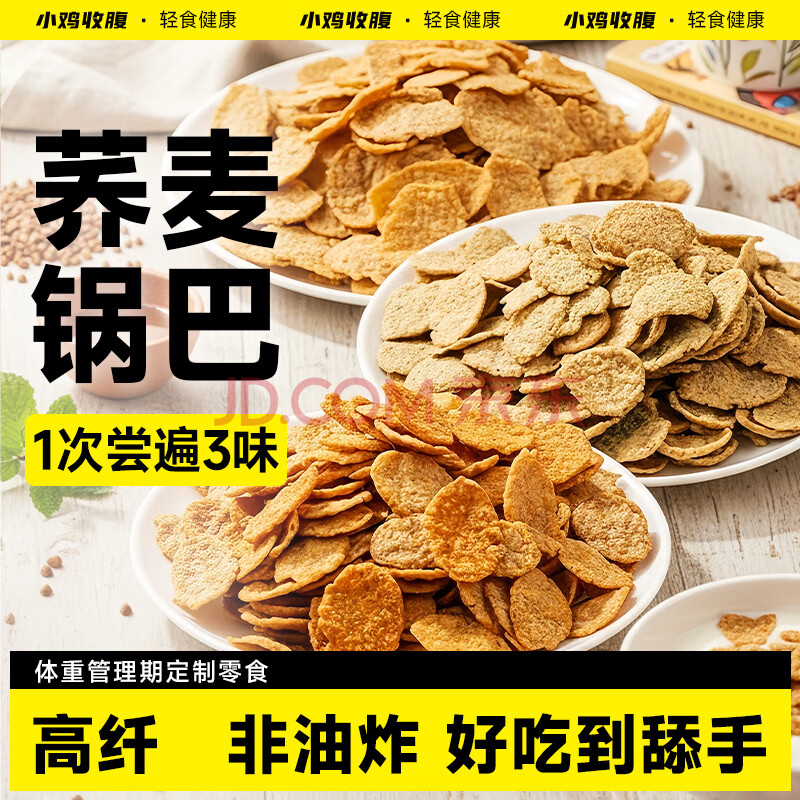 小鸡收腹低脂非油炸荞麦锅巴25g*30苦荞片0无糖精卡脆片减解馋肥零食食品