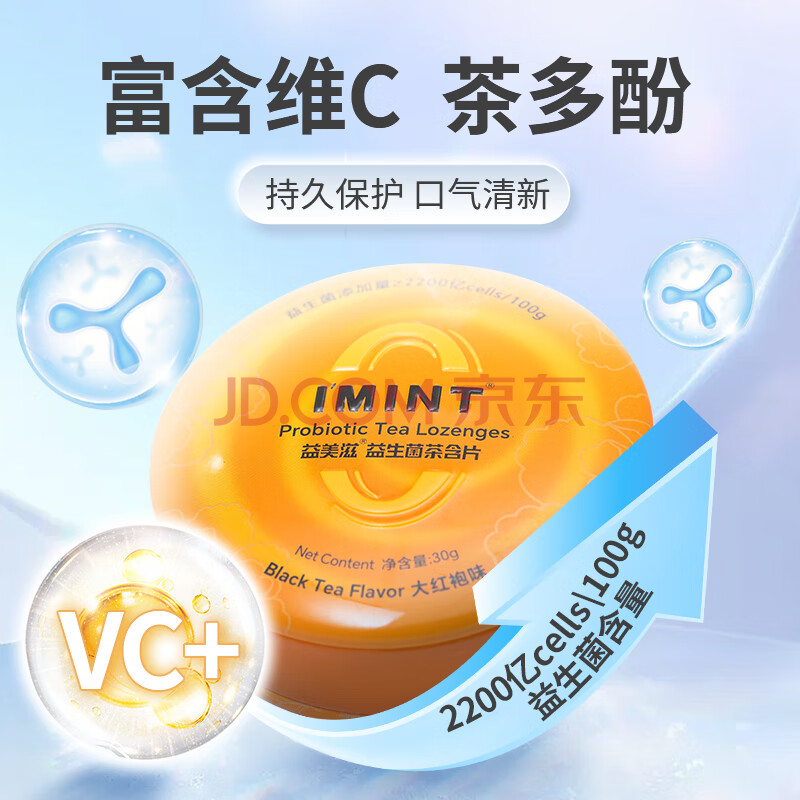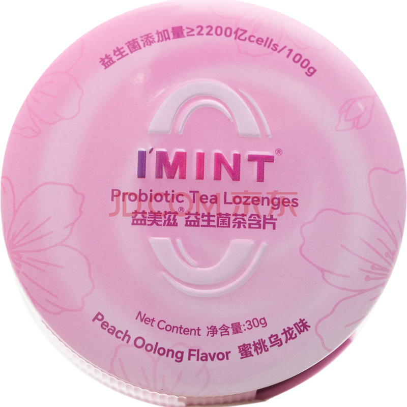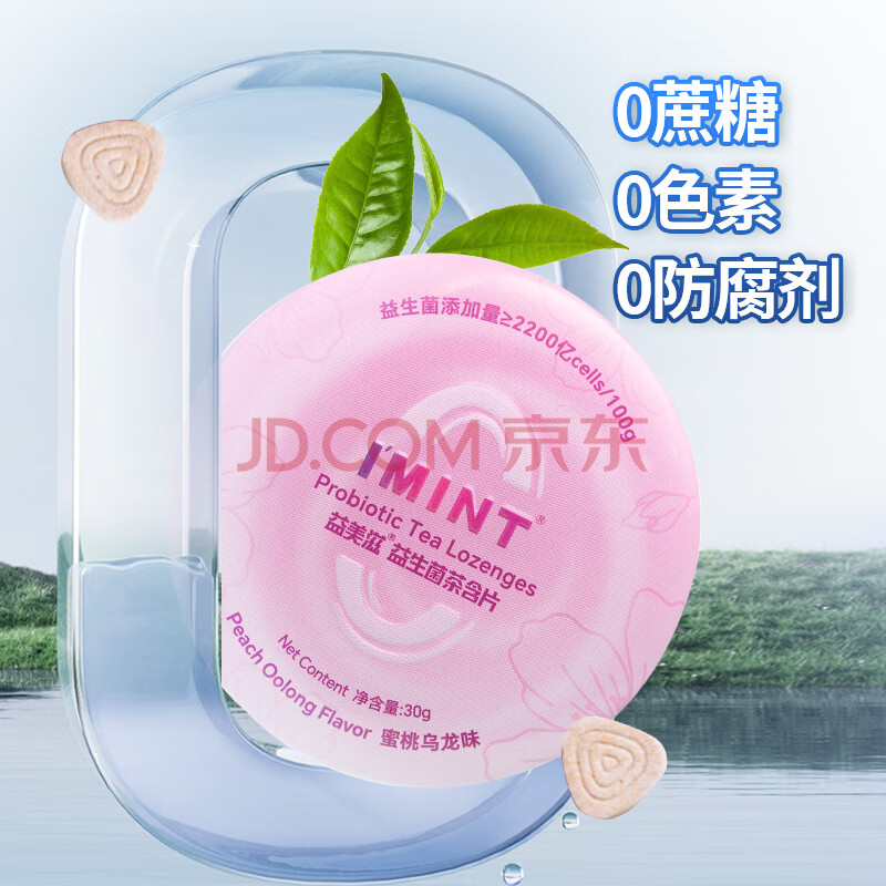 商品名称:I'MINT益美滋 无糖茶叶含片 30g/盒 蜜桃乌龙 润喉糖果 茶多酚益生菌 清新口气
