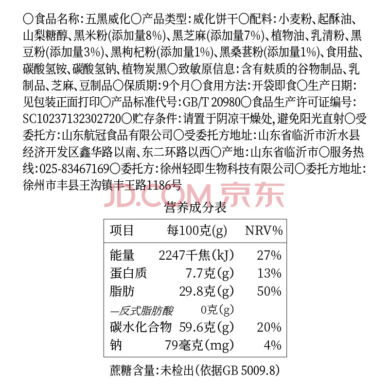 商品名称:轻即五黑威化饼干0无糖精添加蔗糖粗粮脂枸杞桑葚代餐卡零食食品600g