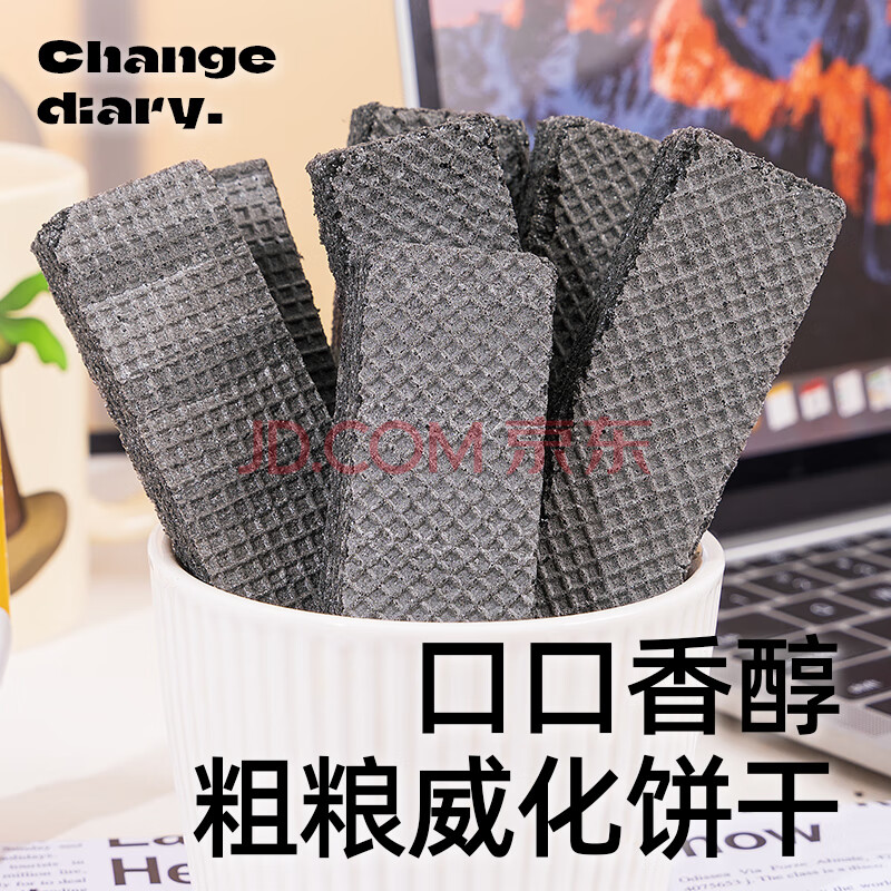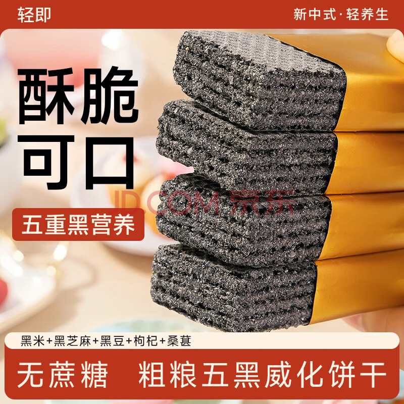 > 轻即五黑威化饼干0无糖精添加蔗糖粗粮脂枸杞桑葚代餐卡零食食品600g