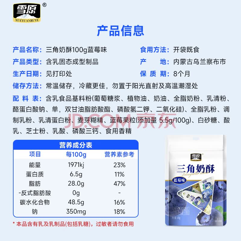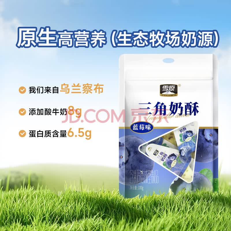 商品名称:雪原三角奶酥100g蓝莓味 奶酪内蒙古特产 儿童休闲零食