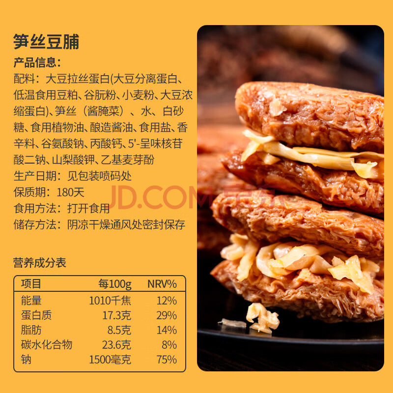 商品名称:脆美人笋丝豆干250g袋手撕烤豆腐干夹笋豆脯干独立小包装办公室解馋零食