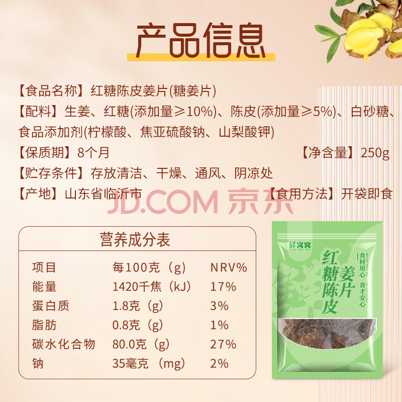 商品名称:鲜窝窝红糖陈皮姜片250g 黑糖陈皮姜即食红糖姜片陈皮姜泡水陈皮零食