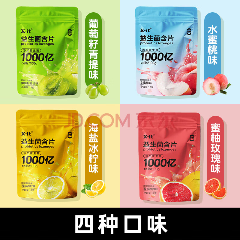 X-IT无糖薄荷糖弹射益生菌糖体补充装通用版清新口气糖果6袋60片102g
