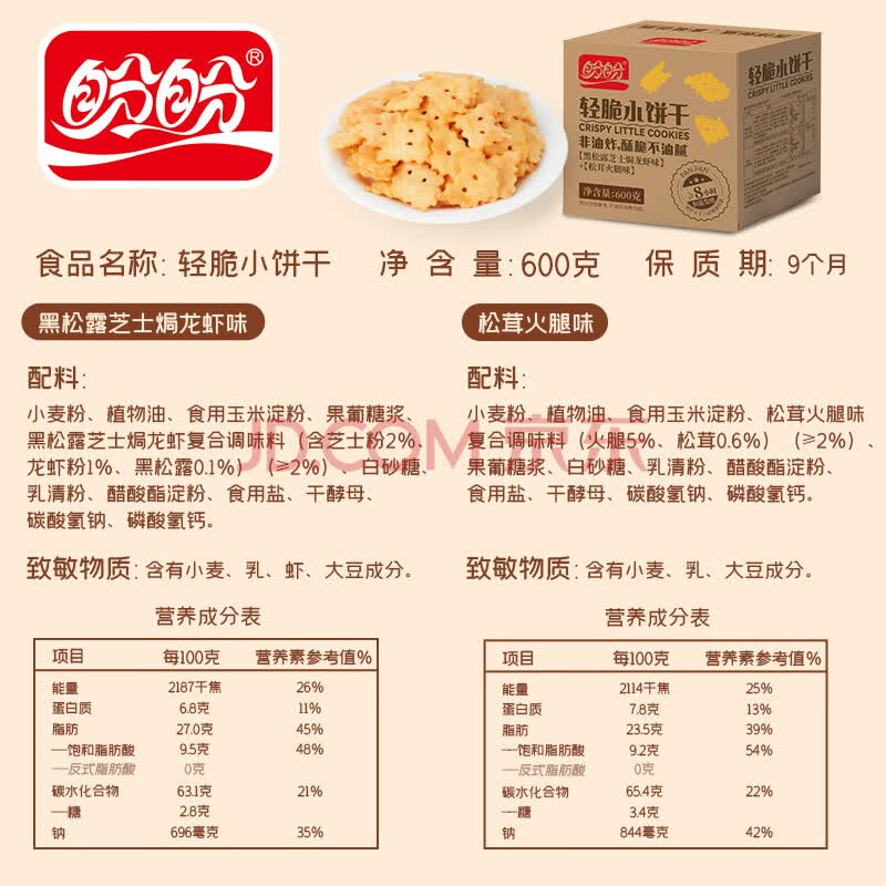 商品名称:盼盼轻脆小饼干 休闲零食酥咸味薄脆苏打饼干早餐代餐 600g/箱