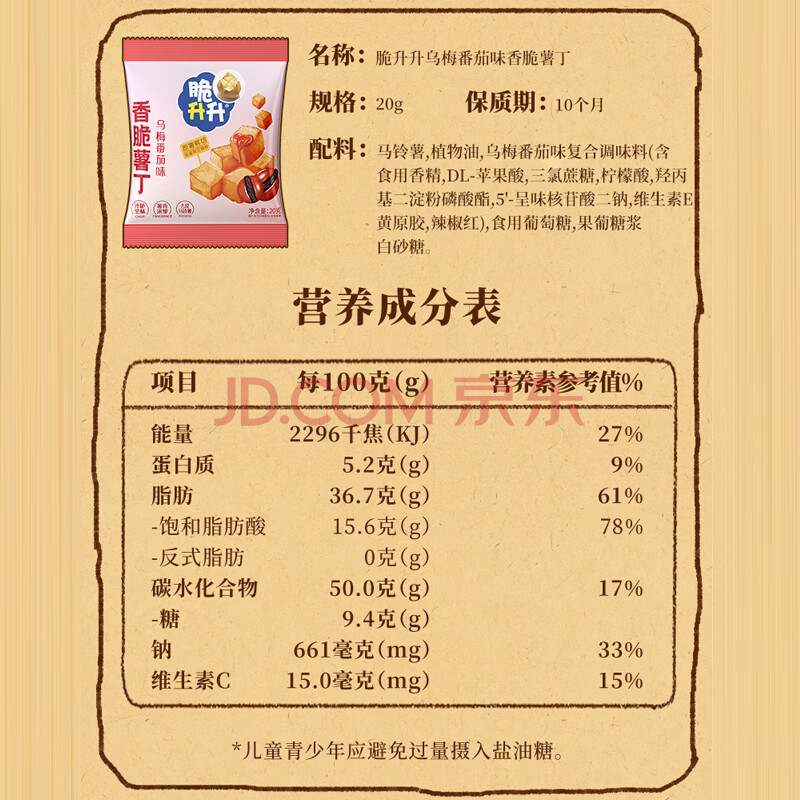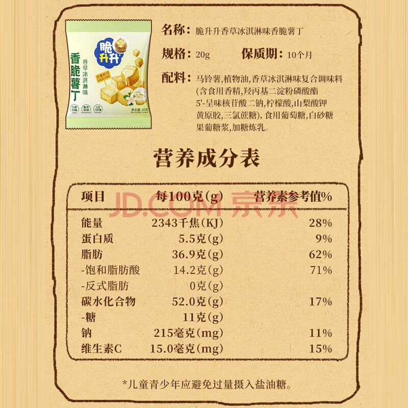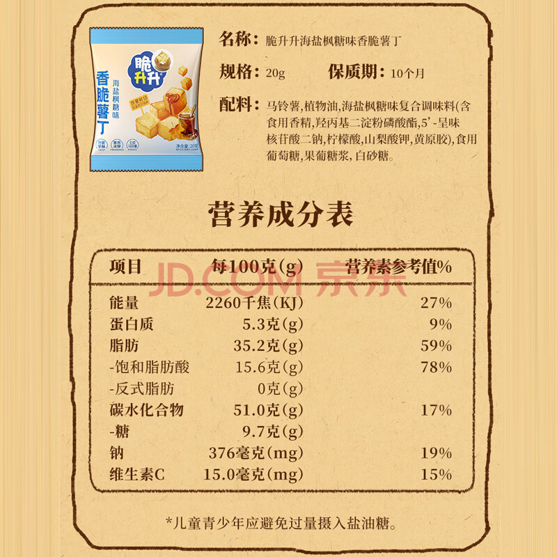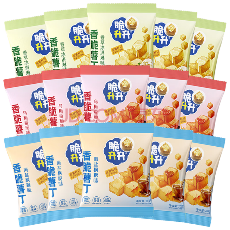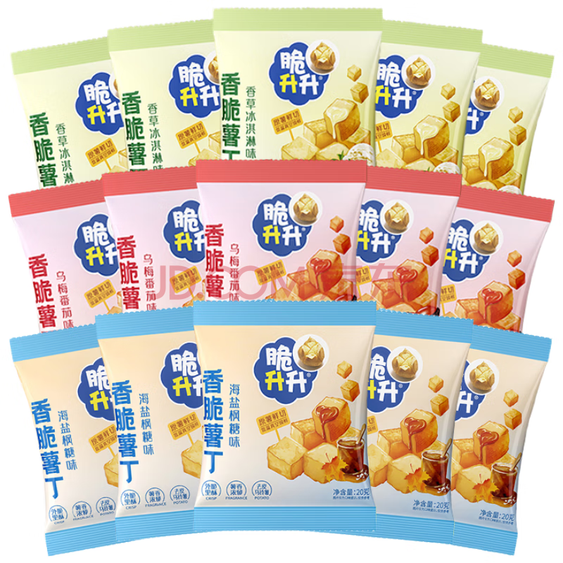 商品名称:脆升升蜂蜜黄油原切薯丁500g(20g*25袋)混合口味休闲零食小吃非膨化